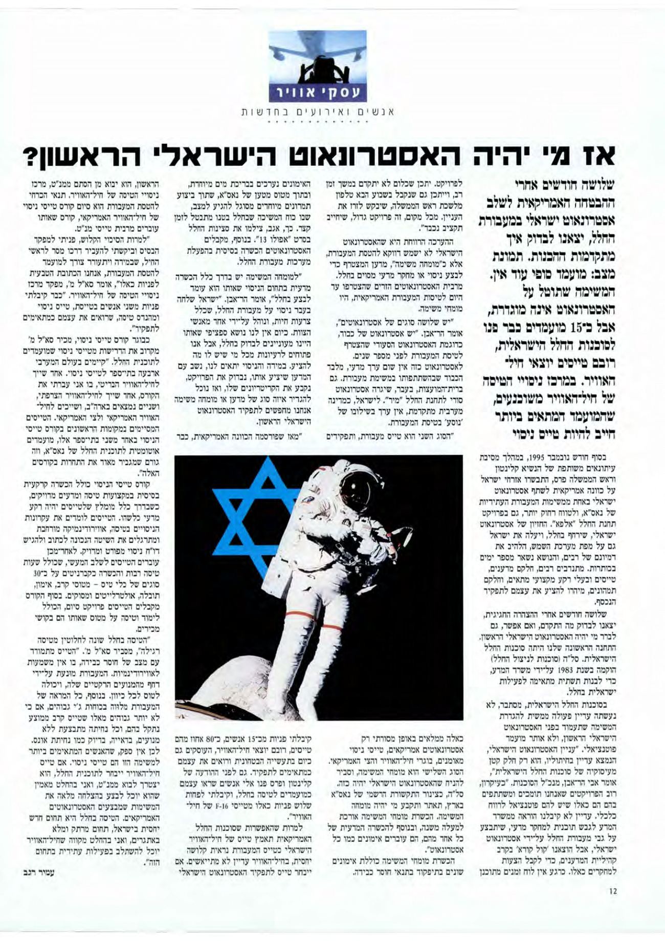 להניח שהאסטרונאוט הישראלי יהיה כזה.